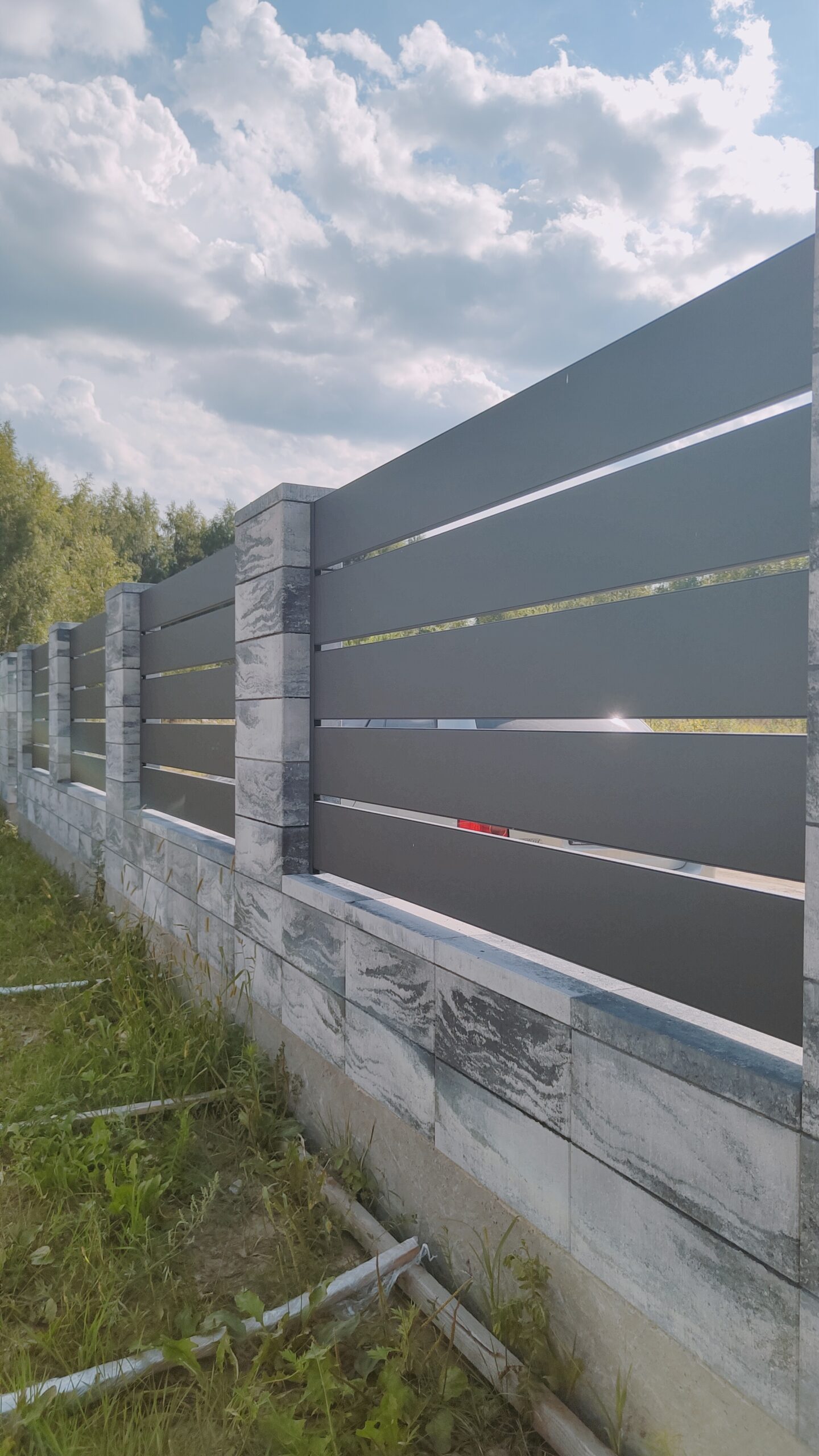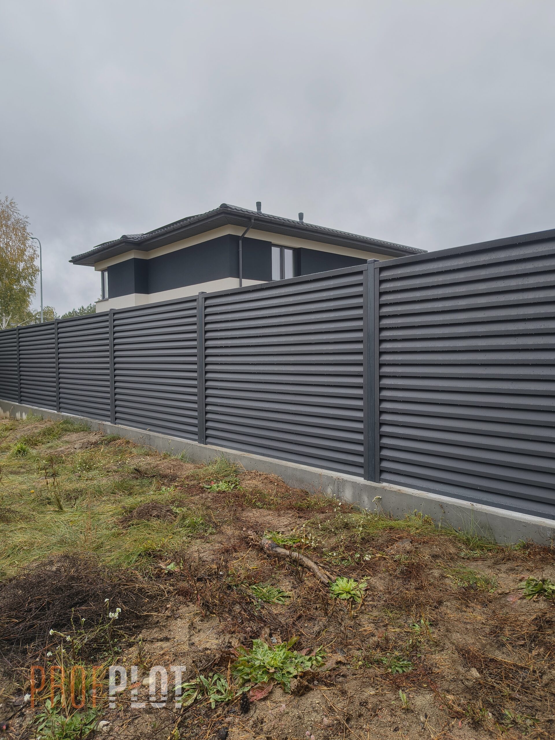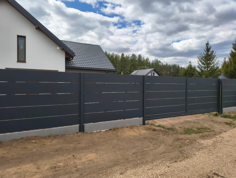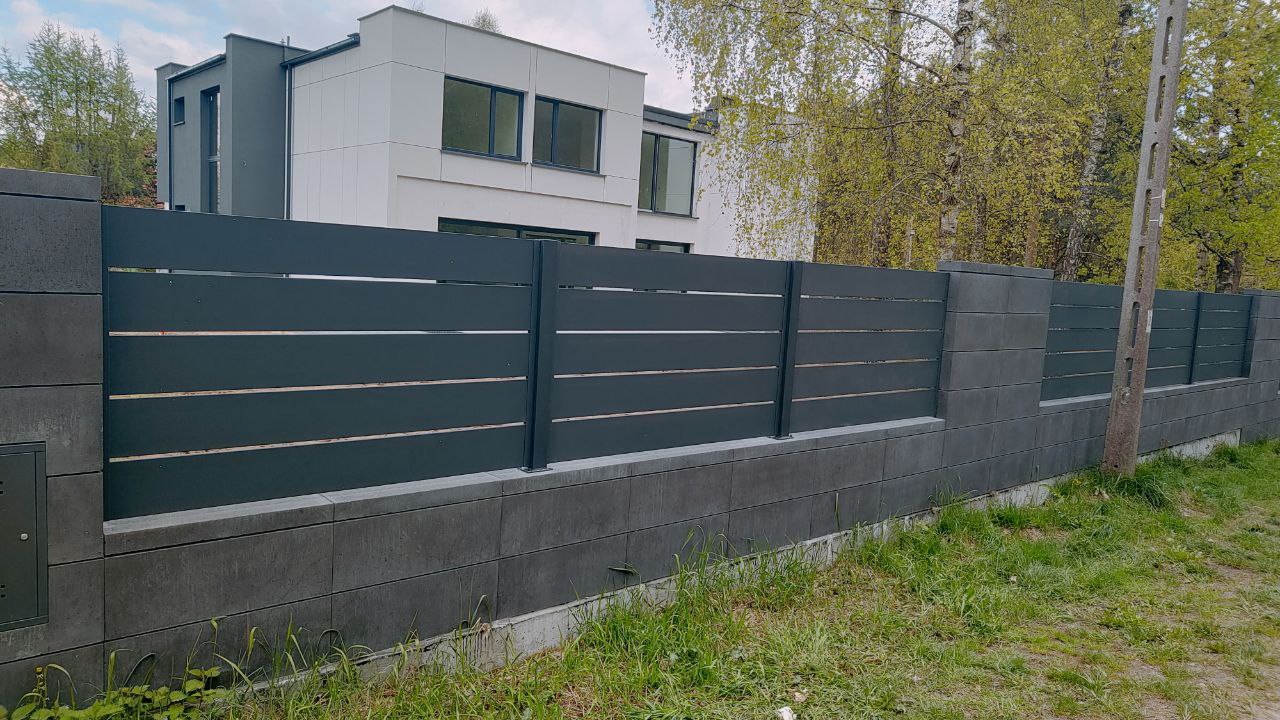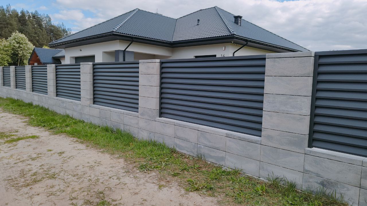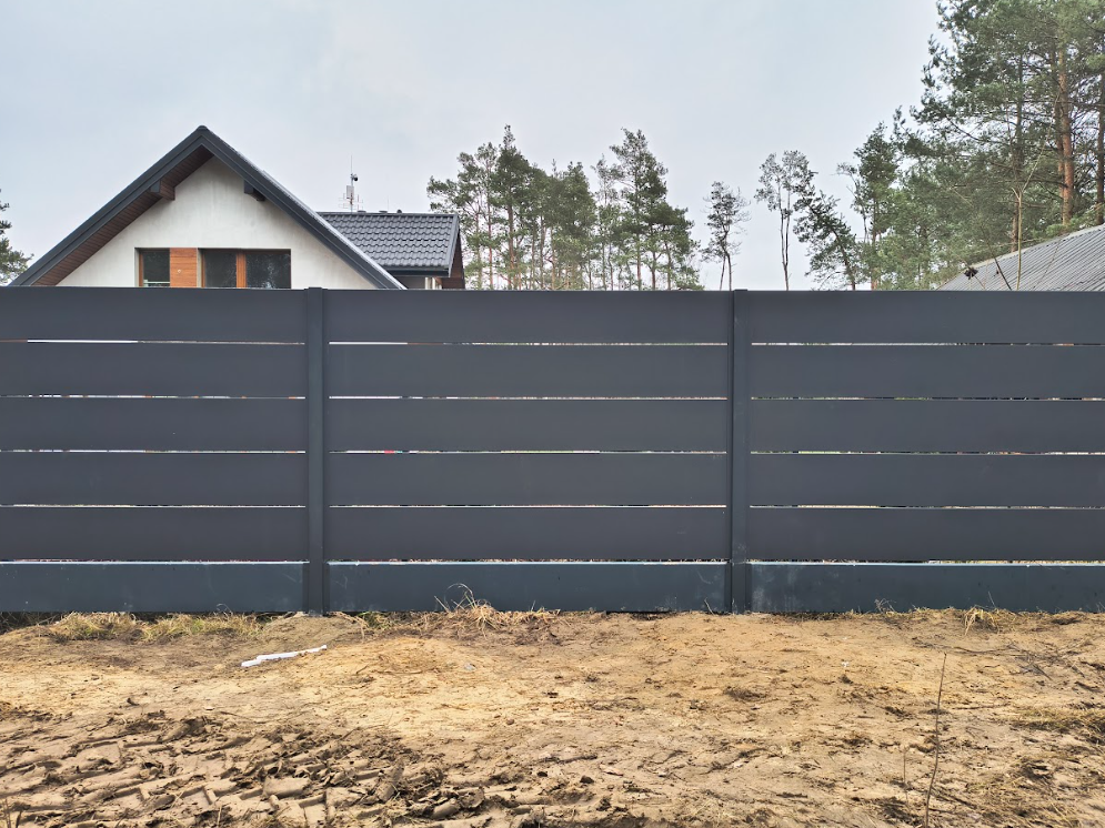 Nowoczesne palisadowe ogrodzenie zapewniające skuteczną ochronę prywatności i estetyczny wygląd posesji. Wykonane z trwałych materiałów, które gwarantują odporność na warunki atmosferyczne.